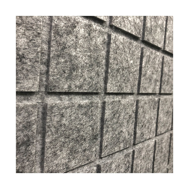 PET 3D PET akustinė plokštė – U formos griovelis yra pagamintas iš 100% poliesterio, perforuojant adatą. Gamybos procesas yra visiškai fizinis ir ekologiškas, nėra nuotekų, išmetamų teršalų, atliekų. nėra klijų, dėl akustinės plokštės porėtumo ji sugeria garsą ir izoliuoja šilumą, netoksiška, nealergizuojanti, nedirginanti, neturi formaldehido rišamųjų medžiagų ir turi aukštą NRC: 0,85
